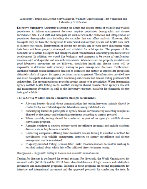 Laboratory Testing and Disease Surveillance in Wildlife: Understanding Test Validation and Laboratory Certification – this is a review of the topic with the intent of using it for discussions with Priogen regarding the testing of cervid tissues for hunters. In addition, it is meant to provide a review to biologists…